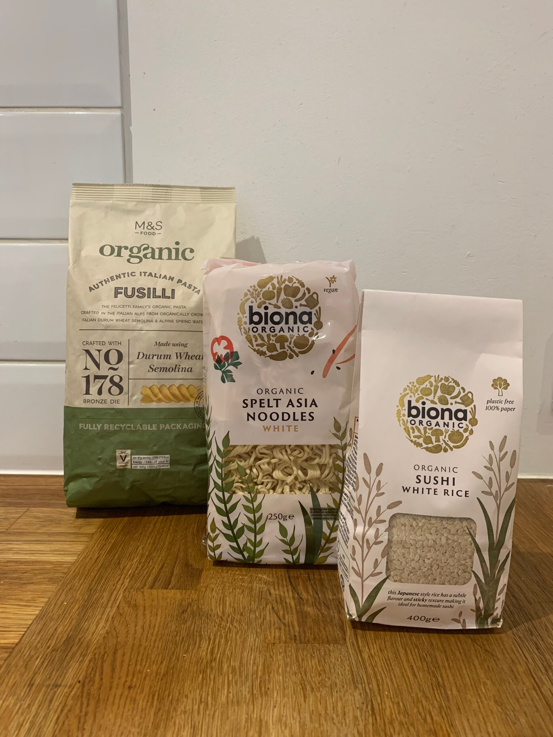 Biona, Marks and Spencers own brand, and Ocado online are some of the suppliers that package rice and pasta in paper packaging.